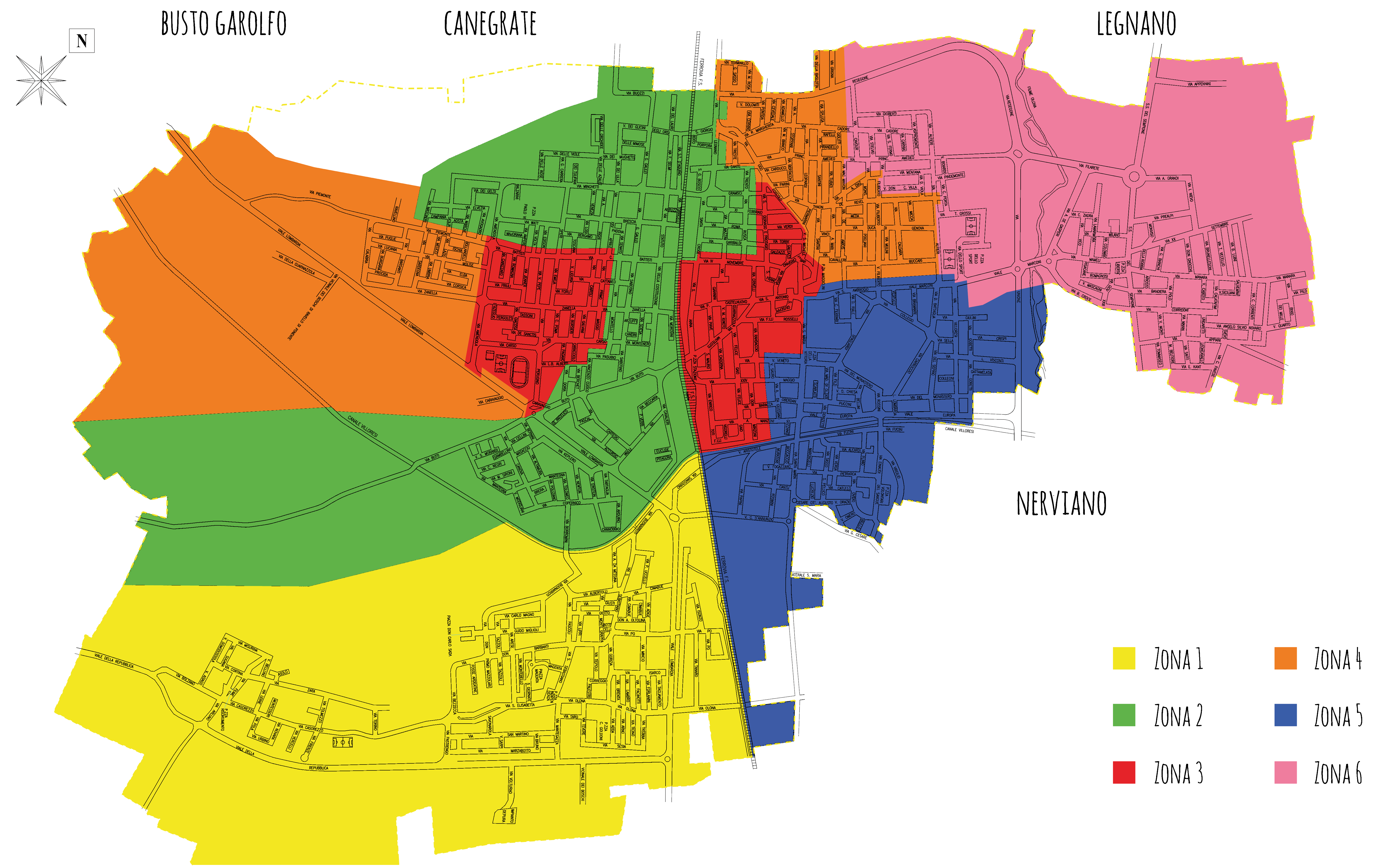 cartina suddivisione per zone - clicca qui per visualizzare l'elenco delle vie divise per zona