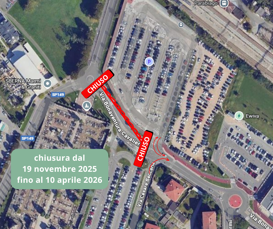 Dal 19 novembre 2025 al 10 aprile 2026 chiusura di via Bonaventura Cavalieri nel tratto tra Via Enrico Butti e Via Cesare Beccaria. Il Gruppo CAP interviene per realizzare il collegamento della rete fognaria alla vasca volano in prossimità del cimitero cittadino.