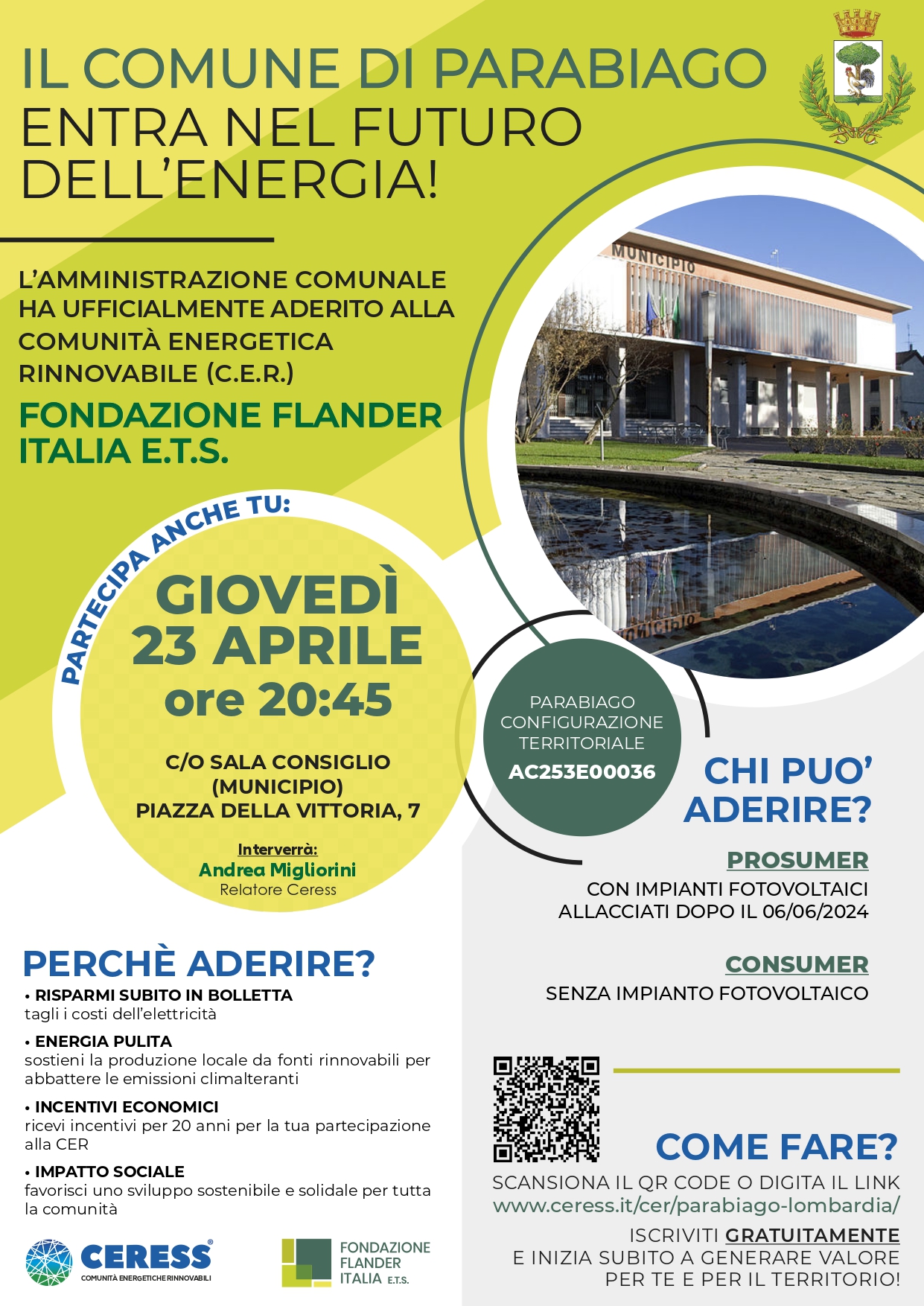Chi volesse, può iscriversi gratuitamente sin da ora al seguente link: www.ceress.it/cer/parabiago-lombardia/ e iniziare subito a generare valore per sè e per il territorio!